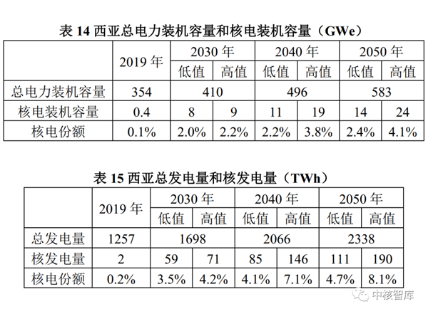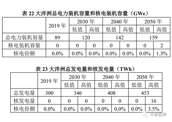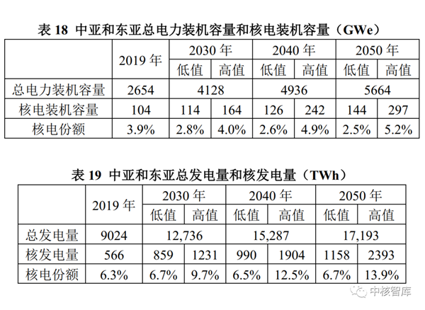 与2019年相比,总电力装机容量到2030年将增长87%,到2050年增长4倍;在高值情景中,核电装机容量到2030年增长一倍以上,到2050年增长近7倍;在低值情景中,核电装机容量到2030年几乎保持不变,到2050年增长2倍多。