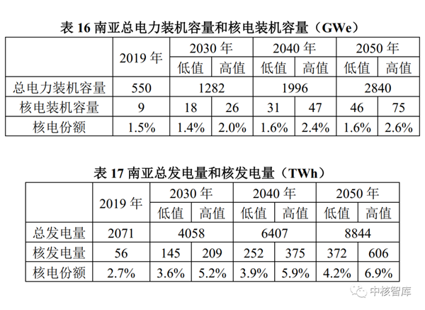 与2019年相比,总电力装机容量到2030年将增长约16%,到2050年增长约65%;在高值情景中,核电装机容量到2030年增长21倍以上,到2050年增长约59倍,在总电力装机容量中的份额增长4个百分点;在低值情景中,核电装机容量到2030年增长19倍,到2050年增长约34倍,在总电力装机容量中的份额增长2个百分点。