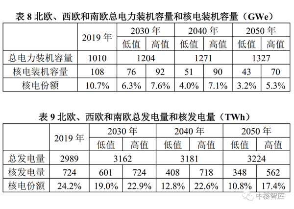 与2019年相比,总电力装机容量到2030年将增长近20%,到2050年增长近1/3;在高值情景中,核电装机容量到2050年减少约1/3;在总电力装机容量中的份额下降超过5个百分点;在低值情景中,核电装机容量到2050年减少60%,在总电力装机容量中的份额下降7个百分点以上。