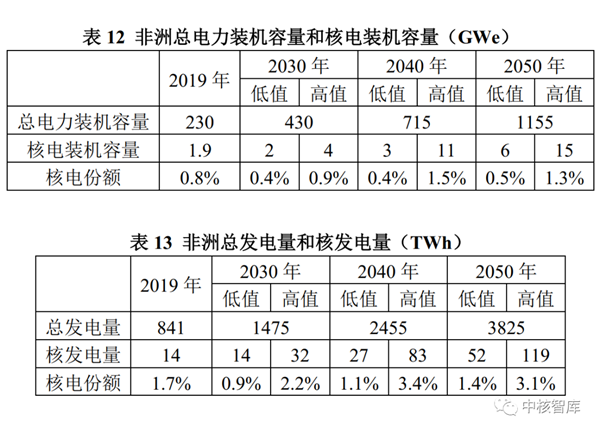 与2019年相比,总电力装机容量到2030年将增长约60%,到2050年增长近2倍;总发电量到2030年增长约55%,到2050年增长近2倍。在高值情景中,首台核电机组将在2030至2040年投入运行,到2050年核电装机容量将在2040年基础上翻番,核电在总发电量中的份额到2050年将达到2.1%。在低值情景中,核电机组也将在2030至2040年投入运行,核电装机容量到2050年将比2040年增长2倍,核电在总发电量中的份额到2050年将为0.8%。