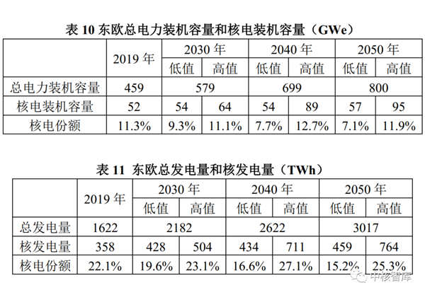 与2019年相比,总发电量到2030年将增长约50%,到2050年翻一番以上;在高值情景中,核发电量到2030年增长40%以上,到2050年增长4倍,在总发电量中的份额翻番;在低值情景中,核发电量到2030年增长约35%,到2050年增长超过130%,在总发电量中的份额保持稳定。