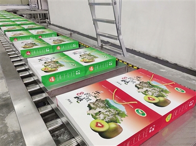 需要辐照的农产品经由传送带进入“迷宫”后,在主控室的监控屏幕上可以发现一道道蓝光从加速管内“冲”出,闪烁几下后,一盒猕猴桃便已完成了辐照程序。通过辐照,可有效控制猕猴桃采摘后的软化“衰老”进程,减少其贮藏期间的腐烂变质,保持果实鲜艳的外观色彩和果肉色泽。