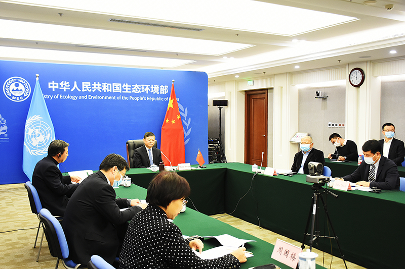 生态环境部国际司、综合司、生态司、气候司,对外合作与交流中心负责同志在线参会,中国常驻环境署代表处副代表远程参会。