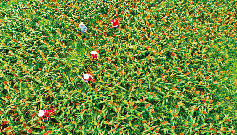 浙江省淳安县创新探索“大下姜”乡村振兴联合体共富模式,走出一条先富帮后富、区域共同富裕之路。图为淳安县枫树岭镇上江村按照“大下姜”农业产业发展要求,打造以红高粱为主题的精品农业园。 浙江日报社供图