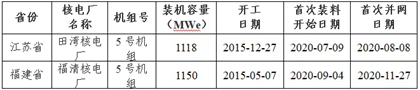(1)福清核电厂5号机组于2020年11月27日首次并网,能力因子不适用统计。