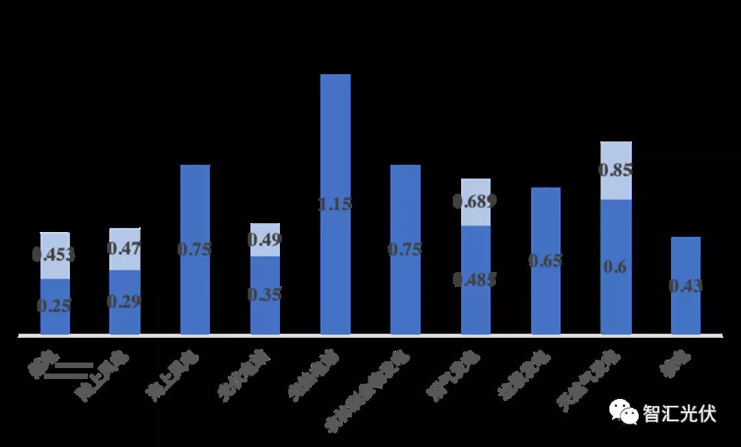 2020年,各种类型发电项目的电价如下图所示。