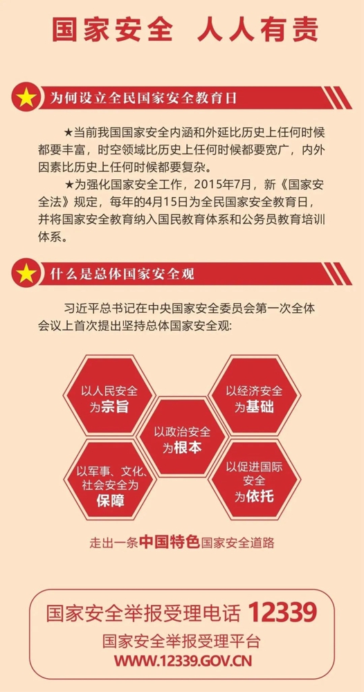 2021年4月15日是第六个全民国家安全教育日。活动主题为“践行总体国家安全观,统筹发展和安全,统筹传统安全和非传统安全,营造庆祝建党100周年良好氛围”。