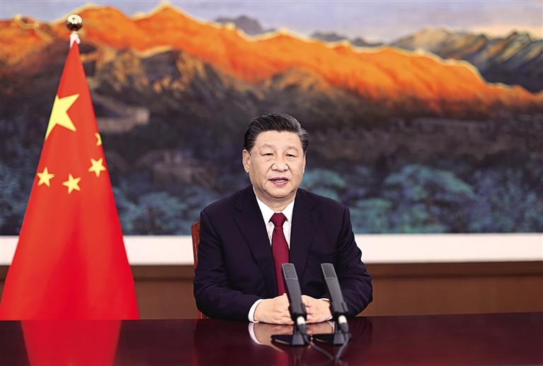 习近平强调,2021年是中国共产党成立100周年。中国共产党为中国人民谋幸福,为中华民族谋复兴,为世界谋大同。中国将继续做世界和平的建设者、全球发展的贡献者、国际秩序的维护者。中国将始终高举和平、发展、合作、共赢旗帜,积极推动构建新型国际关系。中国无论发展到什么程度,永远不称霸、不扩张、不谋求势力范围,不搞军备竞赛。中国将积极参与贸易和投资领域多边合作,推进海南自由贸易港建设,推动建设更高水平开放型经济新体制。欢迎各方分享中国市场的巨大机遇。