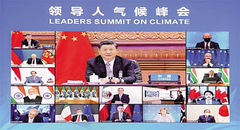 4月22日晚,应美国总统拜登邀请,国家主席习近平在北京以视频方式出席领导人气候峰会,并发表题为《共同构建人与自然生命共同体》的重要讲话。 新华社记者 黄敬文摄