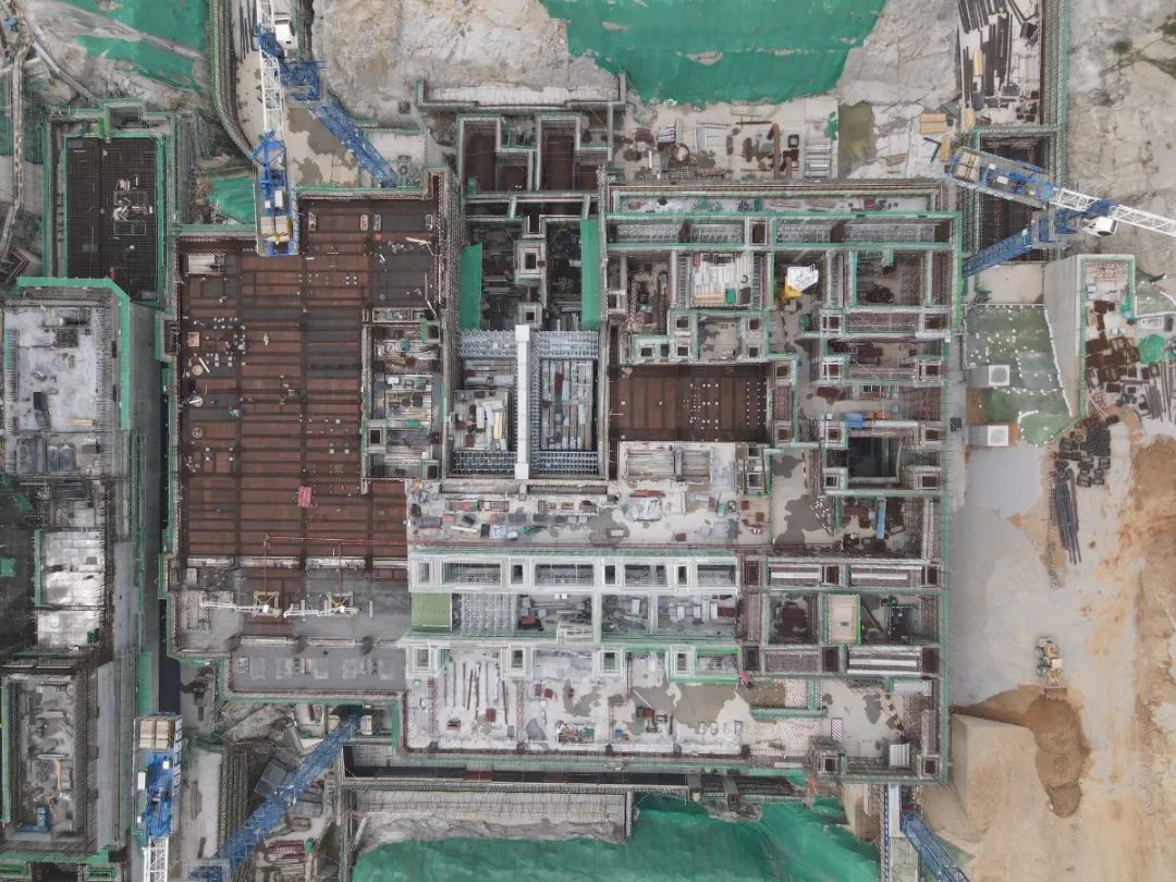 1号常规岛四面环沟,地形复杂,布料设备站位极为有限,且主梁、次梁及挡土墙钢筋密集,钢筋直径大,预埋件数量大、类型多,浇筑时需对整块0米板上3000余块不同类型的预埋件进行安装、调整,对浇筑造成了极大的困难。为保证浇筑顺利完成,中核二四公司漳州核电项目部提前布置布料设备站位,确保浇筑面积全覆盖;集中常规岛优势资源,加大人力投入;严格进行过程自检。全体人员夜以继日,轮流两班倒,保证24小时施工不断,最终顺利完成浇筑任务,为后续主厂房核心部位——运转层平台建设打下坚实的基础。