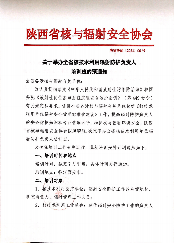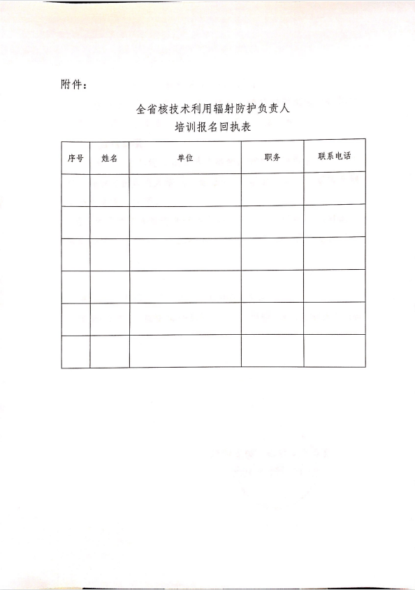 关于举办全省核技术利用辐射防护负责人培训班的预通知