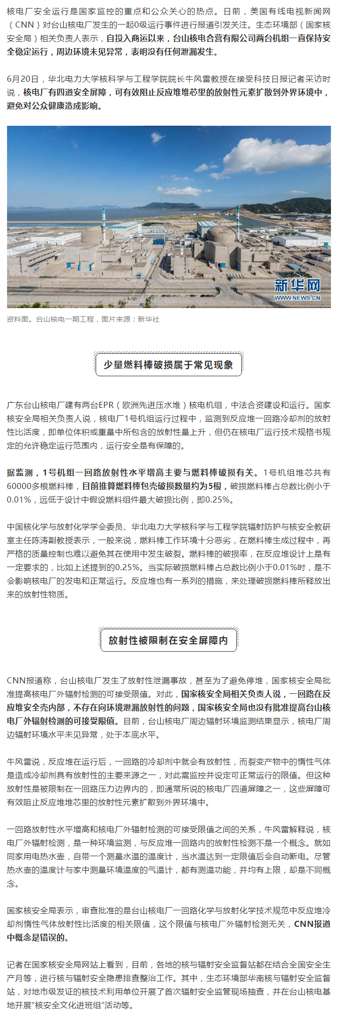 台山核电厂何以保持稳定运行?专家:有四道安全屏障!