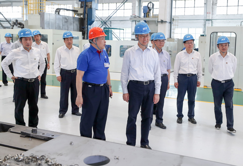 7月5日至6日,中共中央政治局常委、国务院副总理韩正先后在山东东营、济南调研。这是7月6日,韩正在济南二机床集团有限公司考察企业生产运营和技术研发情况。新华社记者 姚大伟 摄