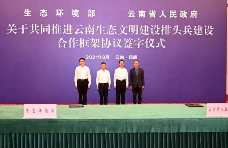 调研期间,生态环境部与云南省人民政府签订《生态环境部 云南省人民政府关于共同推进云南生态文明建设排头兵建设合作框架协议》。按照协议,双方将在推动云南优化区域发展格局、调整优化能源结构、实现碳达峰碳中和、提升适应气候变化能力、开展生物多样性保护利用、推进高原湖泊保护治理、提升城乡建设质量等方面开展战略合作。