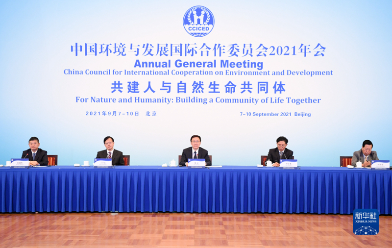 新华社北京9月10日电 中共中央政治局常委、国务院副总理、中国环境与发展国际合作委员会主席韩正9日在北京出席国合会2021年年会并讲话。本次年会以“共建人与自然生命共同体”为主题。