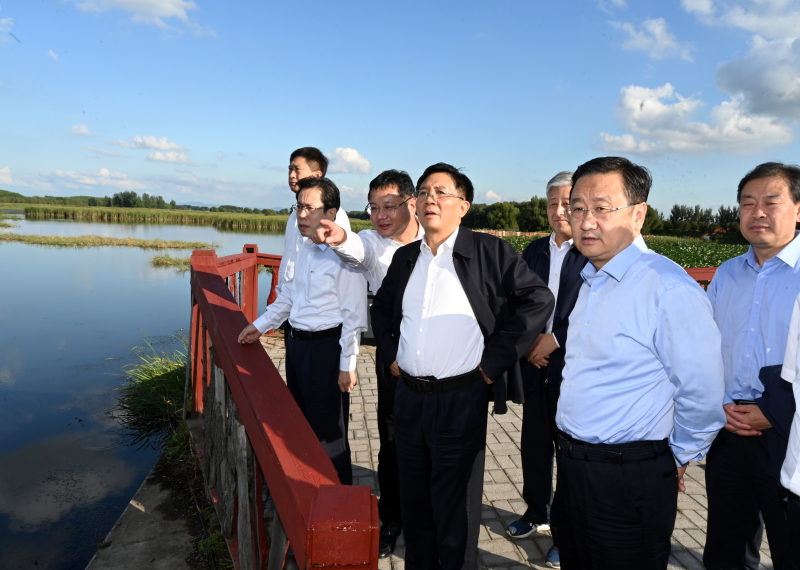 碧水长天,秋色连波。位于辽河流域的七星湿地莲叶芦苇摇曳,一派生机盎然。孙金龙沿栈道步行查看湿地水体状况,了解辽河流域生态环境治理情况。孙金龙指出,辽河流域是辽宁重要的生态屏障,要牢固树立绿水青山就是金山银山的理念,把保护生态环境摆在优先位置。要坚持系统观念,突出流域上下游、左右岸、干支流协同治理,不断改善流域生态环境质量。要加大流域生态保护修复力度,着力恢复流域生态功能,让古老的辽河继续焕发活力、造福百姓。