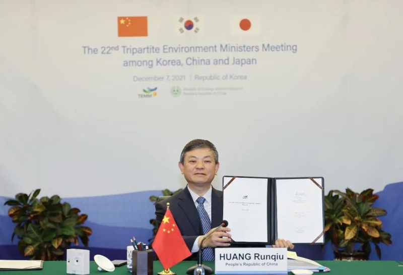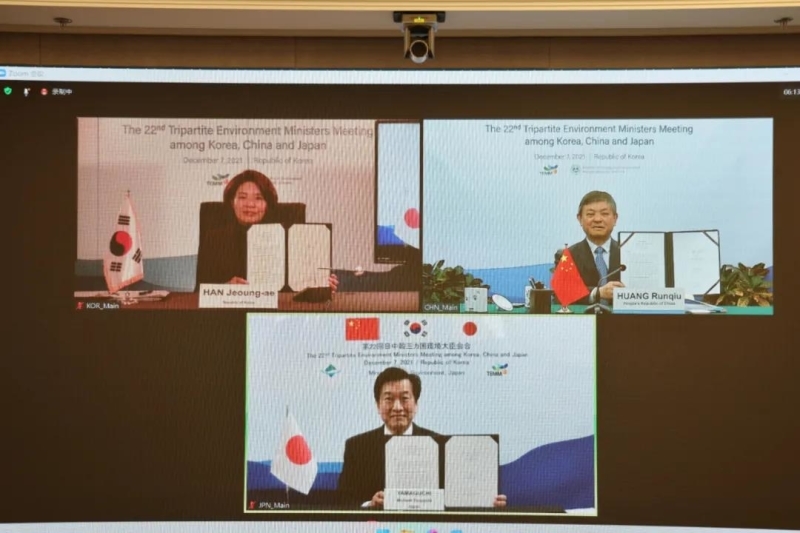 12月7日,第二十二次中日韩环境部长会议以视频形式举行。中国生态环境部部长黄润秋、韩国环境部部长韩贞爱、日本环境大臣山口壮分别率团出席会议,交流本国环境政策和最新进展,探讨三方环境领域合作前景,并就共同关心的区域和全球环境议题交换意见。会议通过并共同签署了《中日韩环境合作联合行动计划(2021-2025)》(以下简称《行动计划》)和《第二十二次中日韩环境部长会议联合公报》。
