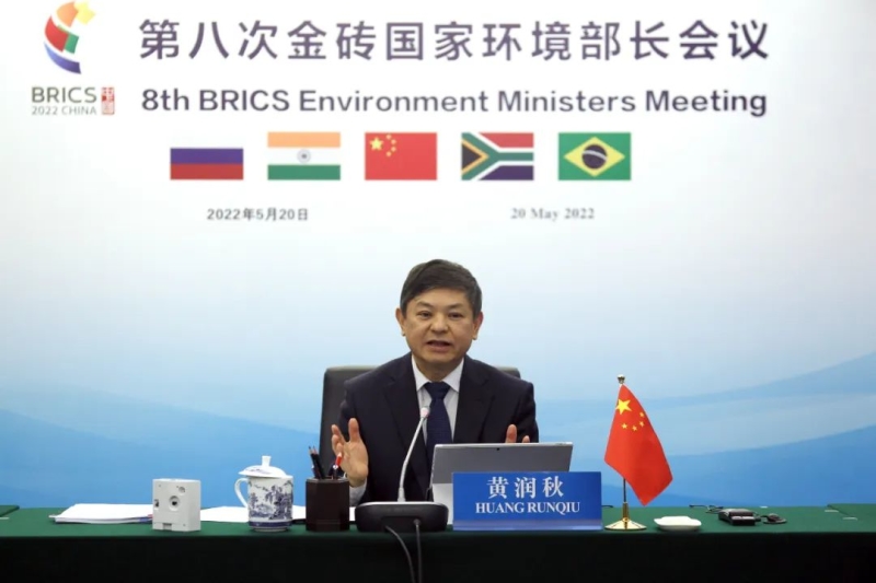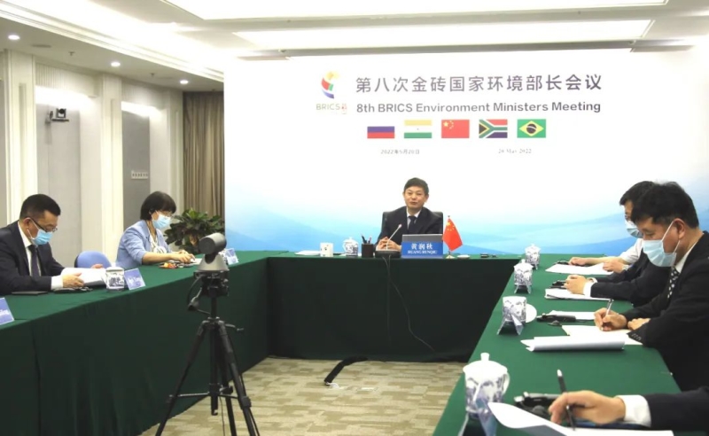 5月20日,第八次金砖国家环境部长会议以视频形式召开。会议以“携手共促绿色低碳发展”为主题,由中国主办,生态环境部部长黄润秋主持会议、致开幕词并作主题发言。南非森林、渔业和环境部部长芭芭拉·克里西,巴西环境部气候与国际关系国务秘书马库斯·帕拉纳瓜,俄罗斯自然资源和生态部部长亚历山大·科兹洛夫,印度环境、森林和气候变化部部长布潘德尔·亚达夫出席会议并发言。