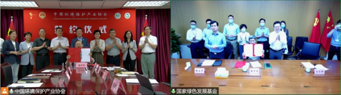 6月14日下午,中国环境保护产业协会与国家绿色发展基金股份有限公司举行战略合作协议线上签约,中国环境保护产业协会党委书记、会长郭承站,副会长李蕾,副会长兼秘书长滕建礼,国家绿色发展基金总经理张荣庆、副总经理吕彤轩、副总经理张安平等出席会议。