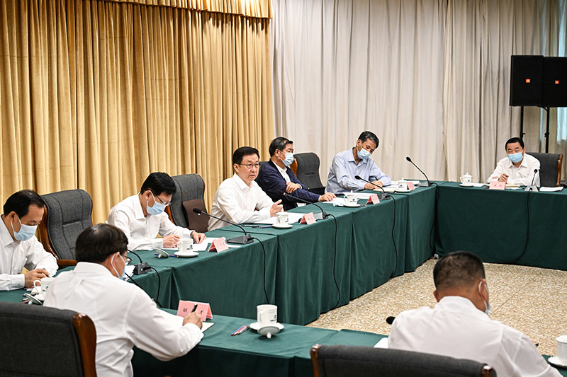 6月16日,中共中央政治局常委、国务院副总理韩正在中国国际工程咨询有限公司主持召开座谈会,深入学习贯彻习近平总书记重要讲话和指示批示精神,贯彻落实党中央、国务院决策部署,分析国家重大项目前期论证和投资建设情况,研究部署做好下一步重点工作。新华社记者 饶爱民 摄