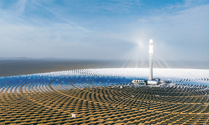 在甘肃省敦煌市向西约20公里处,被称为“超级镜子发电站”的敦煌100兆瓦熔盐塔式光热电站在戈壁滩上闪耀。这是我国目前建成规模最大、吸热塔最高、可24小时连续发电的100兆瓦级熔盐塔式光热电站。 新华社记者 马希平/摄