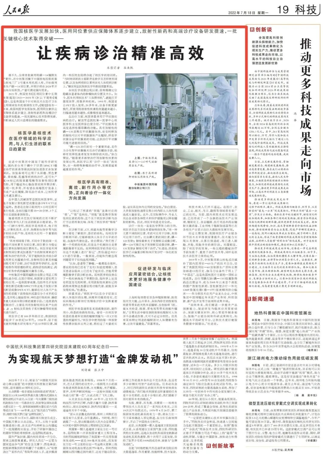 经过长期发展,我国核医疗产业链各环节技术水平得到显著提升,技术能力实现从无到有、从落后到追赶,现已进入跟跑、并跑、领跑并存的新阶段。刘蕴韬说,除了核医学的发展,一些尖端的癌症治疗手段如质子、重离子治疗技术等,同样是核技术在医学方面的应用。