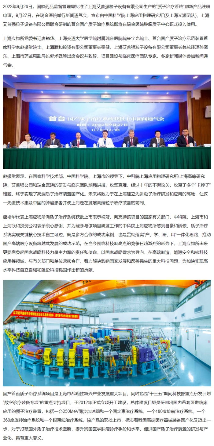 我国国产首台质子治疗系统获批上市