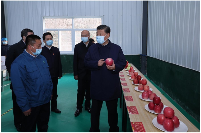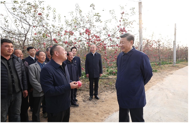 10月26日至28日,中共中央总书记、国家主席、中央军委主席习近平在陕西省延安市、河南省安阳市考察。这是26日下午,习近平在延安市安塞区高桥镇南沟村苹果洗选车间,察看当地种植的苹果。新华社记者 鞠鹏 摄