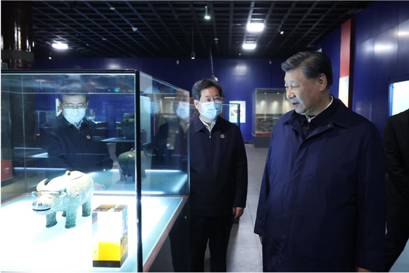 10月26日至28日,中共中央总书记、国家主席、中央军委主席习近平在陕西省延安市、河南省安阳市考察。这是28日下午,习近平在安阳市殷墟博物馆考察。新华社记者 鞠鹏 摄
