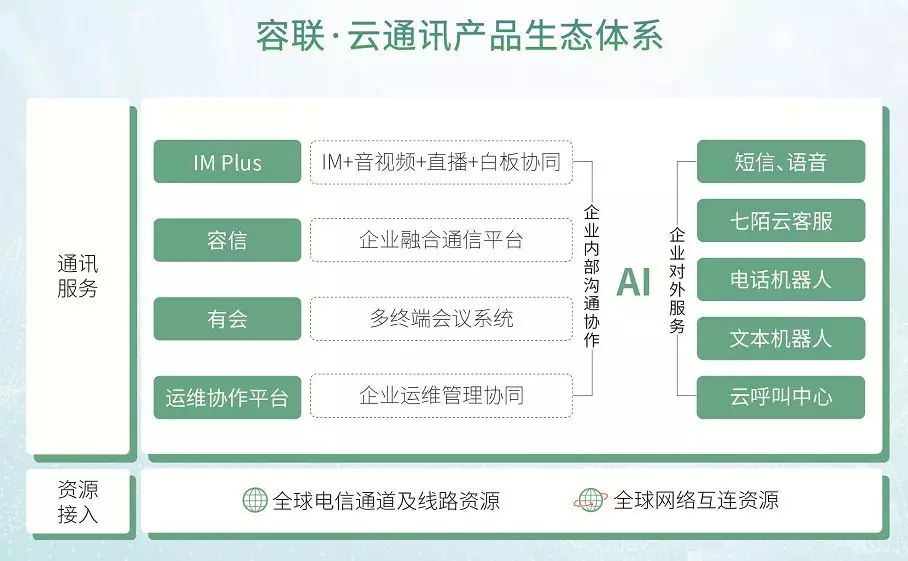 作为中国最早的企业通讯云服务商,容联通过PaaS能力平台服务了80%的互联网企业,如今,容联也正在经历从通讯云服务到智能通讯服务的转型,围绕通讯体系建设,持续深入通讯PaaS服务的同时、加强SaaS应用、行业定制化解决方案及AI等新技术的全通讯能力布局与创新,满足客户内部办公通讯、多方协作、外部客户服务、业务营销等企业各个领域通讯需求。