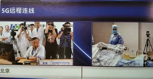 2019年6月27日,北京积水潭医院成功完成全球首例机器人多中心联合远程骨科手术。通过5G在机器人远程手术中心,北京积水潭医院院长田伟通过远程系统控制平台,与嘉兴市第二医院和烟台市烟台山医院同时连接,成功实施了两例骨科手术。